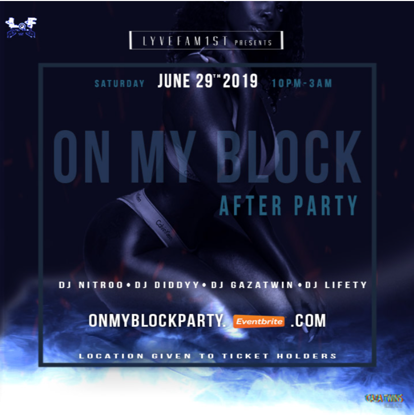 ON MY BLOCK AFTER PARTY Saturday, June 29, 2019 10:00 PM 22:00 Sunday, June 30, 2019 3:00 AM 03:00 LyveFam1st Presents: On My Block After Party (map) Google Calendar ICS